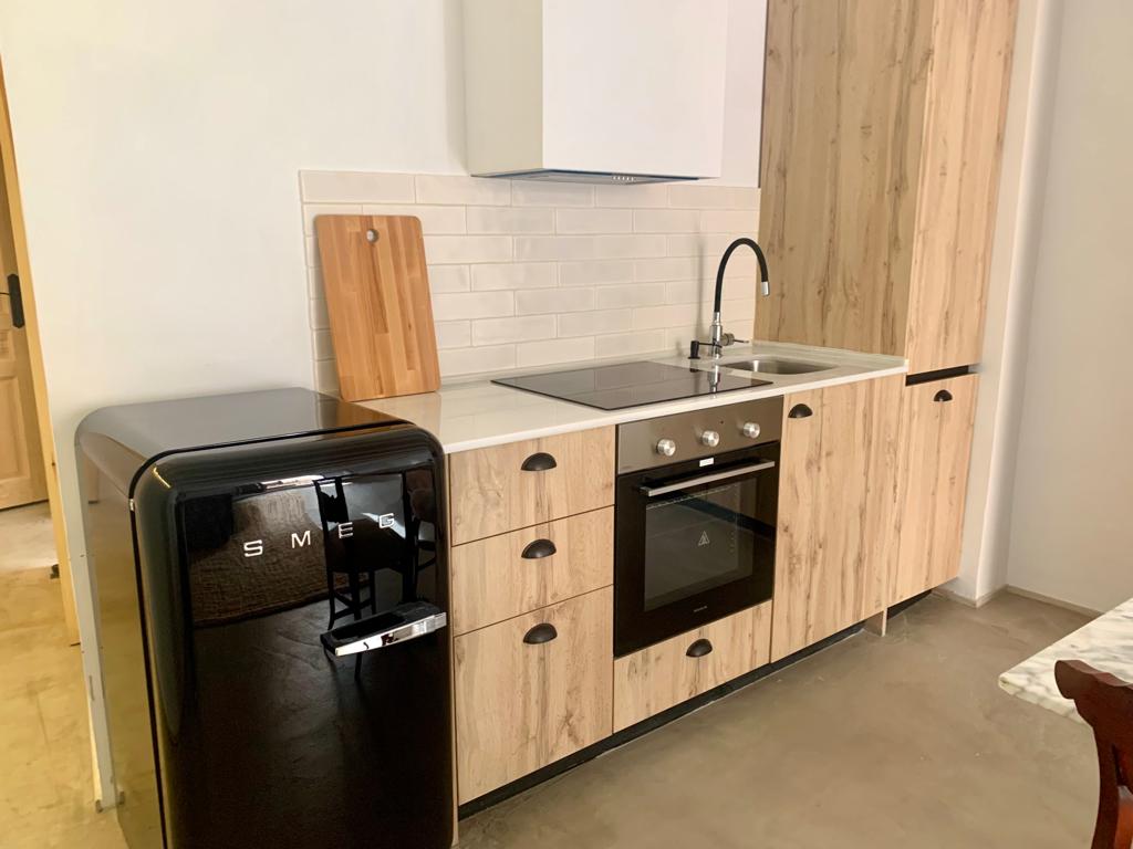 Cada apartament presenta una habitació doble amb bany complet, i una àmplia zona de sala d'estar/menjador amb una cuina totalment equipada. La sala d'estar compta amb un sofà llit doble. La cuina està equipada amb electrodomèstics de primera qualitat, com ara un forn, vitroceràmica, rentavaixelles, microones, nevera i congelador. A més, disposa de petits electrodomèstics com ara una torradora, bullidora d'aigua i cafetera.